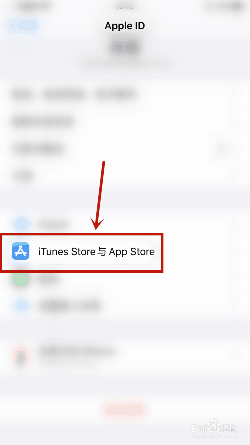 其次,在【Apple ID】页面中点击【iTunes Store与App Store】。
