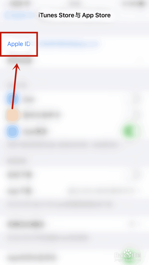 接下来,在【iTunes Store与App Store】点击上方的【ID】。