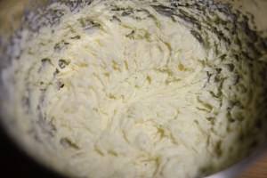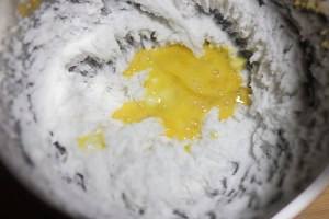 逐步加入鸡蛋液(全蛋),每一次都要充分混合,再加入下一次蛋液