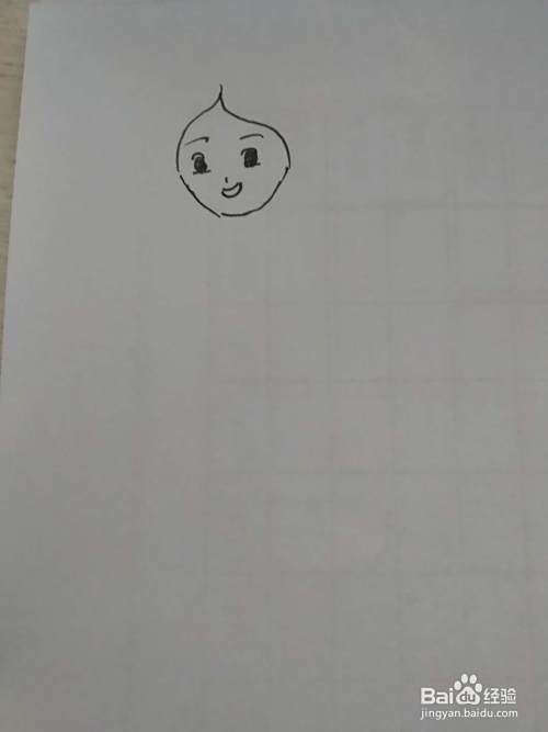 第一步先画人字,围成一个圆,当做小女孩的脸。