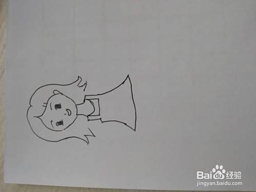 第三步画出小女孩的背带裙子。