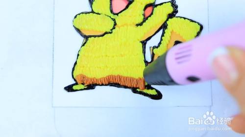 然后用3D笔描出皮卡丘的形状。