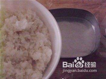 把米饭拿出,切块(切的时候,刀上一定要沾少许的水,方便切割)。