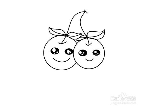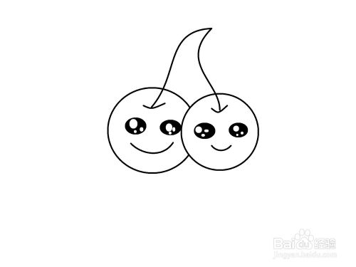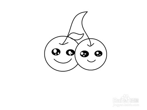 画出樱桃大大的眼睛和嘴巴,如图所示。