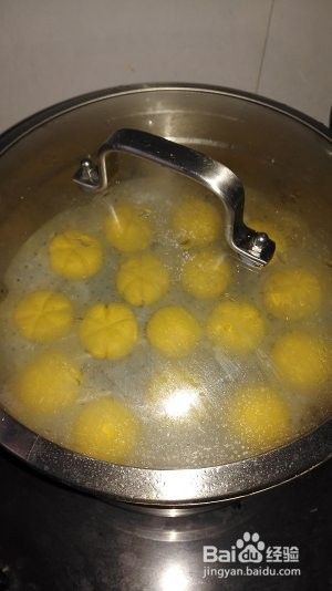 包好馅后,再用手稍压一下,用一个牙签在团子上压上纹路。