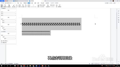 然后再全选所有的内容,点击页面上方的引用,再点击引用目录。