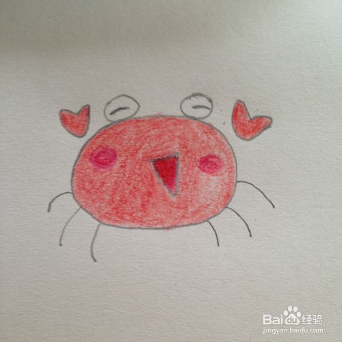 画上螃蟹的嘴巴,笑呵呵快乐的样子。