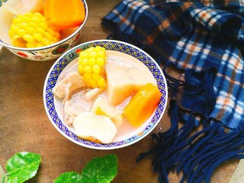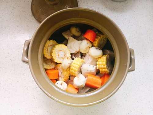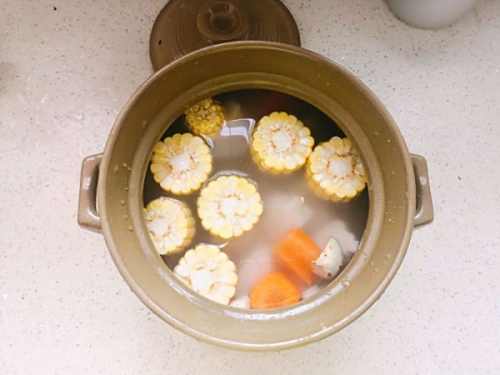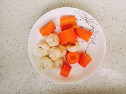 6红萝卜和马蹄也去皮切块,玉米切成几段。