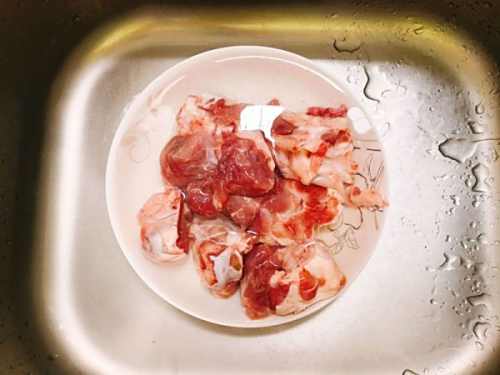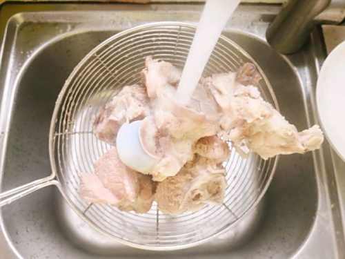 1猪骨头重新干净,锅中倒水清水,放入猪骨 头烧开,焯去血水。