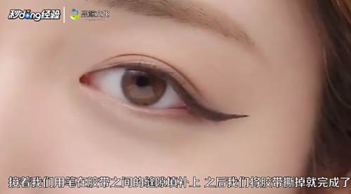 方法一:在眼睛上面和下面用胶带相交贴上,用笔填补胶带之间的缝隙。