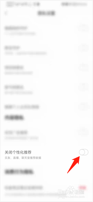 在弹出的界面中点击“关闭个性化推荐”右侧按钮