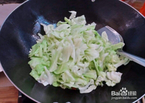 放入包菜快速翻炒。