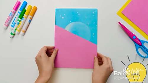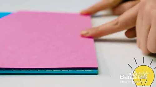 然后再拿出一张彩色的卡纸,量一下本子的尺寸。