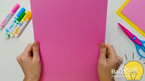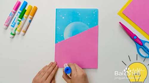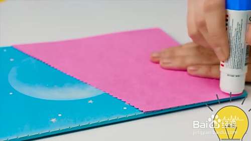 然后再把胶棒拿出来,在这个彩纸的边缘涂上。