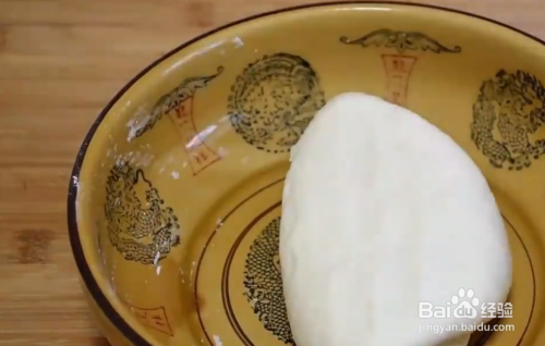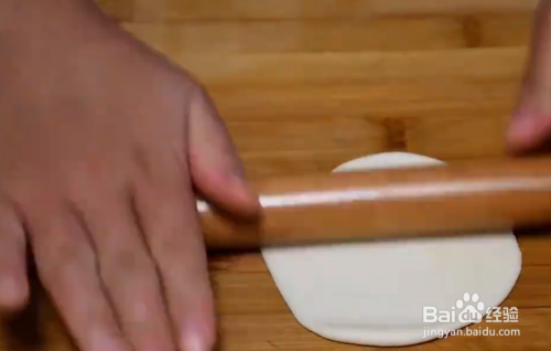 擀成面饼,薄一点,像饺子皮一样
