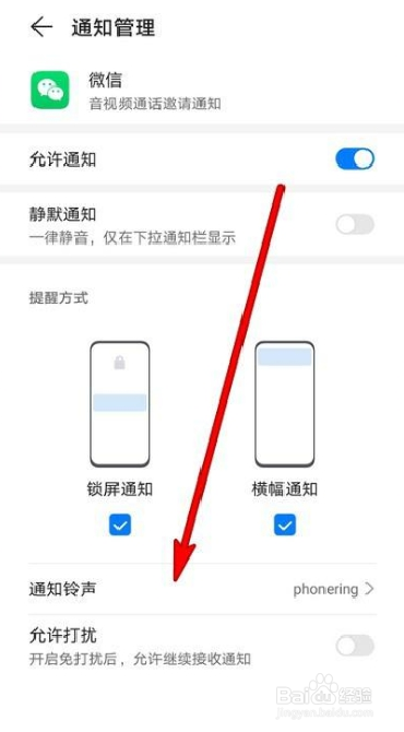 第三步:打开之后选择通知铃声,打开这个选项进行设置。