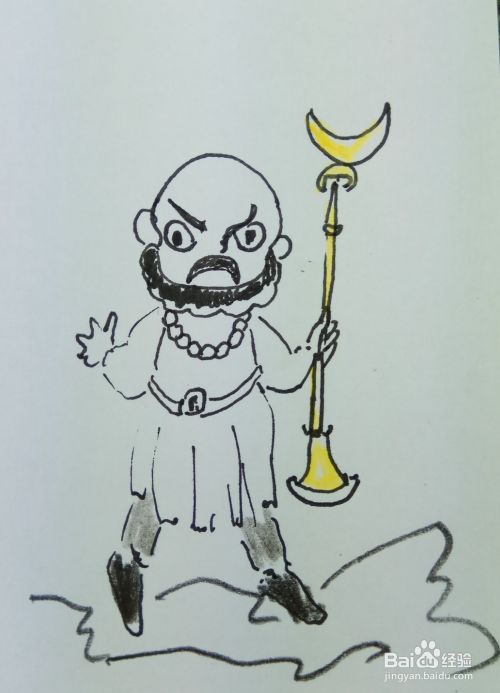 沙和尚是《西游记》中的人物,为护送唐僧西天取经,立下了汗马功劳,沙和尚的长相也非常有特点,让人看起来有点害怕,但是人却是非常忠诚的,我们认真的观察一下他,然后来画他吧,希望能够帮助到大家。