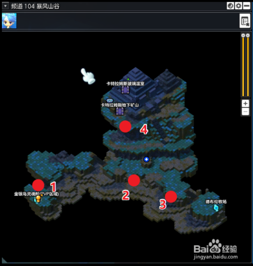 暴风山谷黄金宝箱位置在小地图的标识如下图所示。