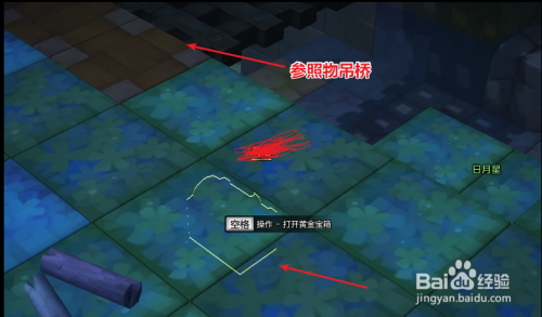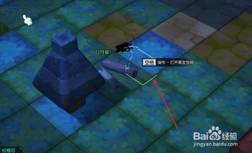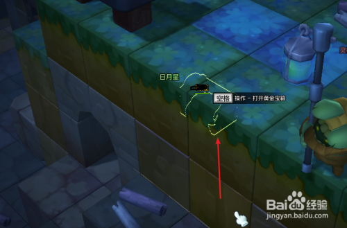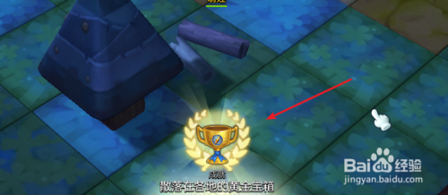 用技能打碎树后面的石块,进入后面的洞穴后就可以摸到黄金宝箱了。