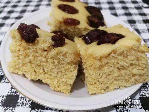 中火烧开,水开蒸25-30分钟,关火焖5分钟,出锅切块装盘。松软好吃的发糕上桌了。