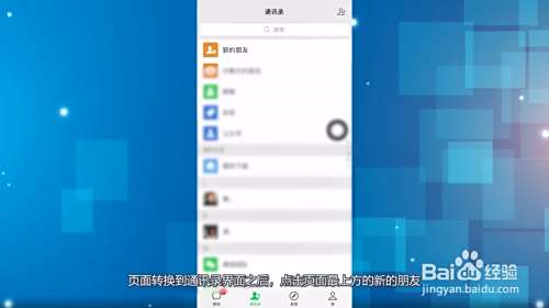 页面转换到通讯录界面之后,点击页面最上方的新的朋友。