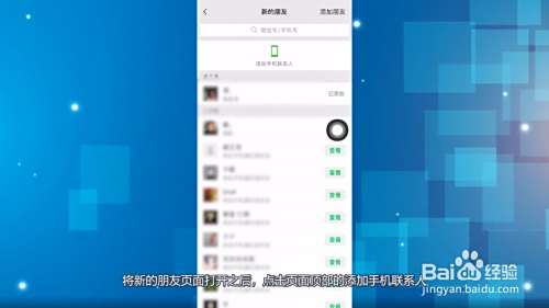 将新的朋友页面打开之后,点击页面顶部的添加手机联系人。