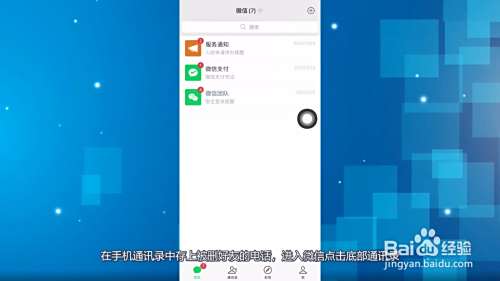 在手机通讯录中存上被删好友的电话,进入微信点击底部通讯录。
