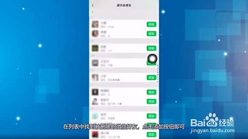 在列表中找到被删除的微信好友,点击添加按钮即可,添加后即可直接找回好友,不需要对方同意添加。