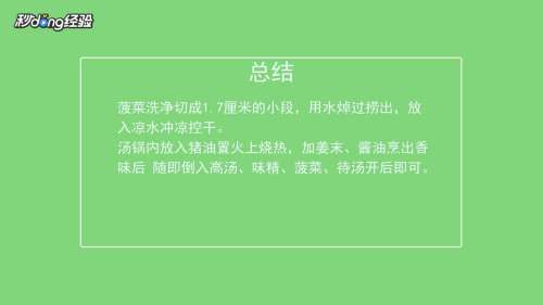 烹出香味后,倒入高汤,味精,菠菜,待汤开后即可。