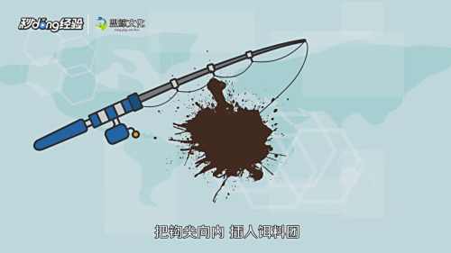 3平均分配钩在饵料团中的位置,把钩尖向内,插入饵料团。