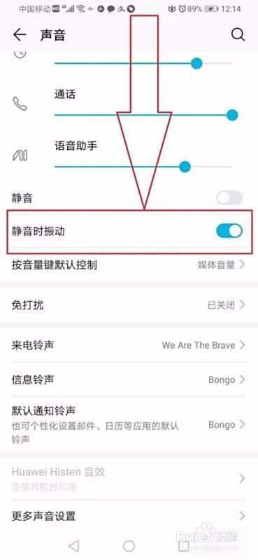 3、其次找见页面中间的静音时震动并进行点击。