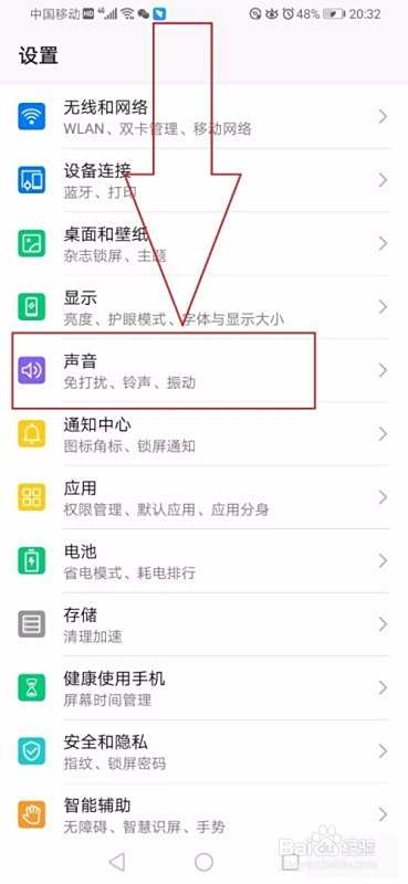 然后一起在设置主页面找到声音并进行点击进入。