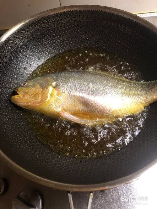 锅里放入适量的油,然后将黄花鱼放入里面煎