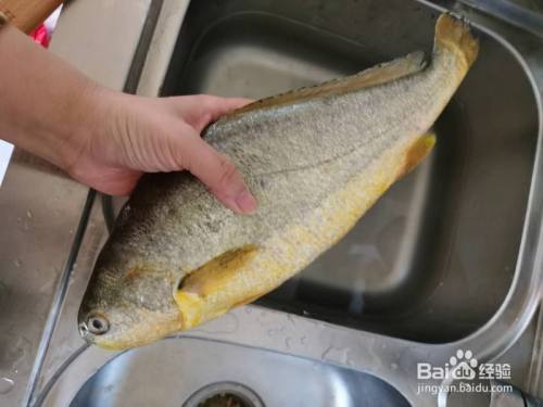 将黄花鱼去掉鱼鳍,鱼鳞,鱼肚子然后清洗干净