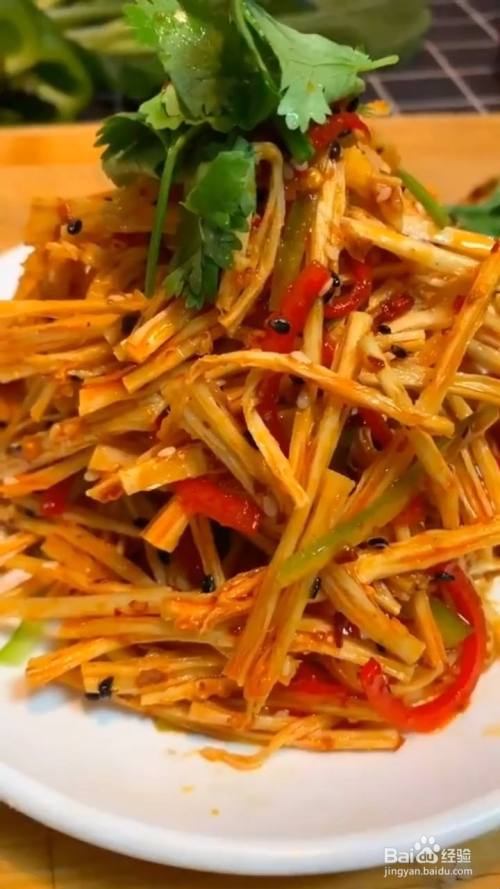 撕成小条,加青红椒,芝麻,盐,生抽,香醋,蜂蜜,辣椒油搅匀