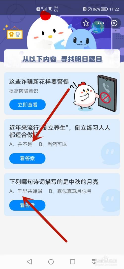 最后可以看到问题,正确答案都选择A,即可回答正确。