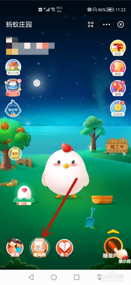 首先在支付宝蚂蚁庄园里面,点击领饲料按钮进入。