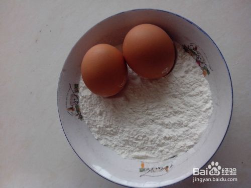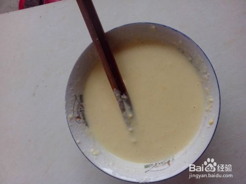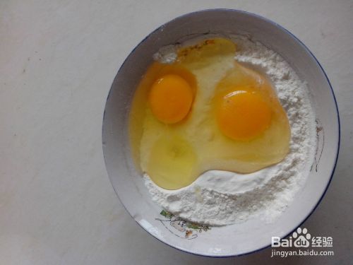 鸡蛋打入装有面粉的碗中,搅拌均匀打成糊