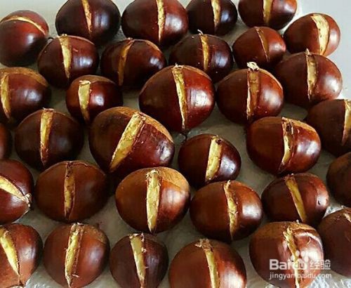 第三步,将板栗放入烤箱烤制。温度大概设置在150~200度为宜。