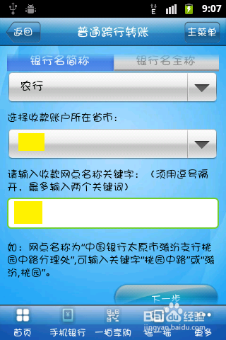 在此界面中,选择“收款银行的类别”,“收款账户所在省市”以及“收款网点名称”的简写或全称。