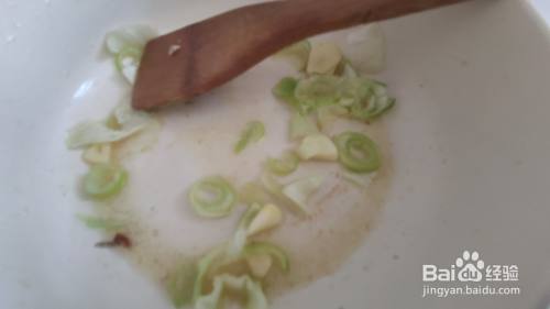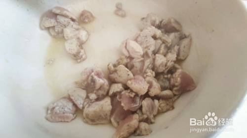 锅中倒入油,放入葱蒜炒出香味,鸡丁在锅中翻炒至变色后盛出