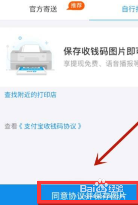 选择自行打印,点击同意协议并保存图片,即可开通了商家服务。