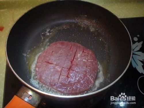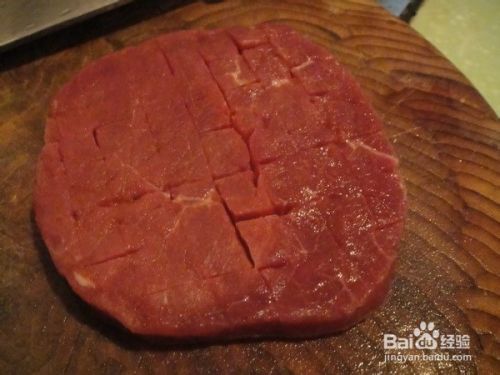 牛排解冻后,需要在牛排上划上花刀,横着竖着切开,但是不能切断