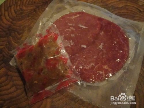 把牛排从冰箱里拿出来解冻,自然解冻,夏天大约半小时就能自然解冻了,冬天大约要1个半小时,天气不好的,甚至更长时间。(与之一起解冻的还有黑椒汁)