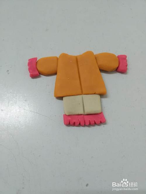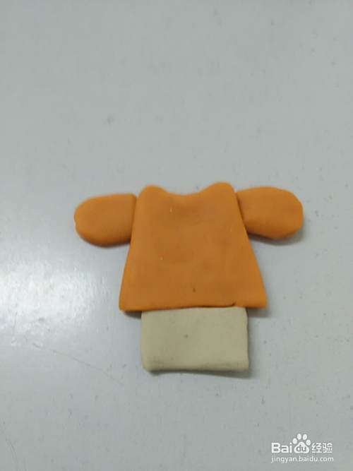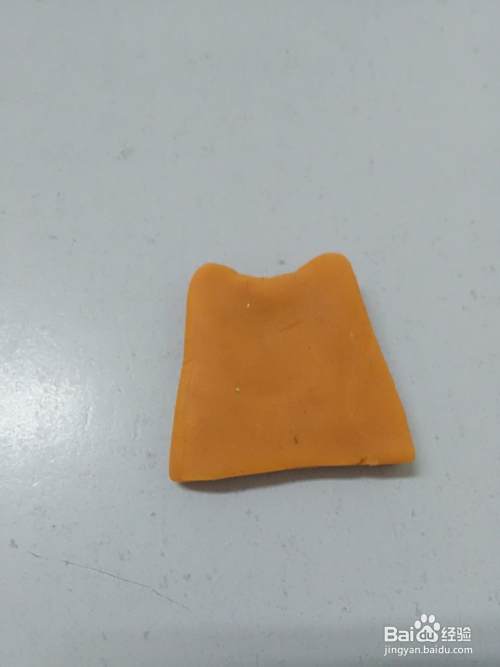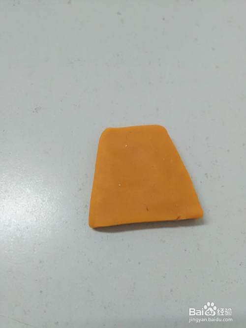 先用桔色彩泥捏一个梯形,表示婴儿衣服的前后片。
