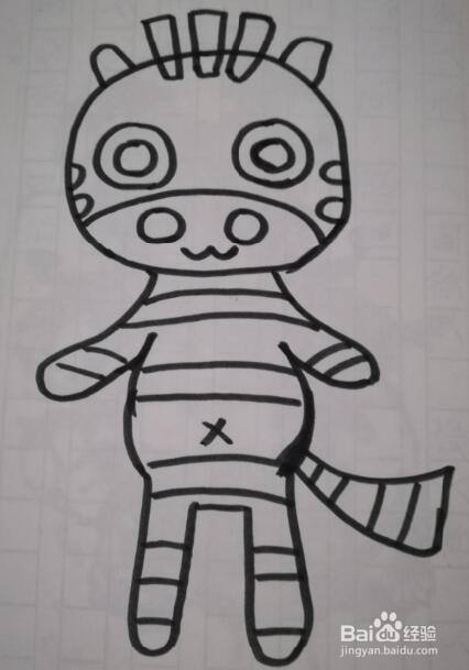 最后一步,如图所示,给斑马的涂上黑色部分,完成。