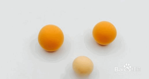 然后开始做饼干。 用橙色粘土揉2个大球,用轻粘土揉1个小球。