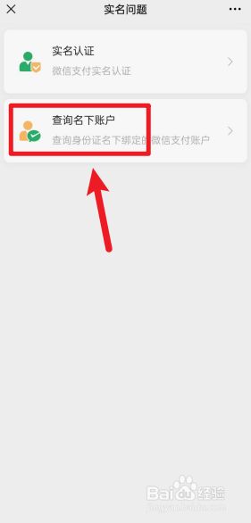打开手机上的微信,点击支付下的钱包,点击帮助中心,点击实名中心,选择查询名下账户即可。
