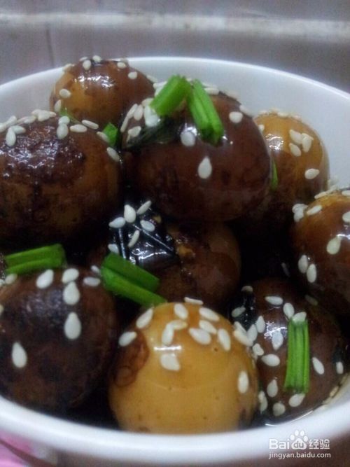 撒上白芝麻和蒜苗,好吃又好看的红烧鹌鹑蛋就做好了。