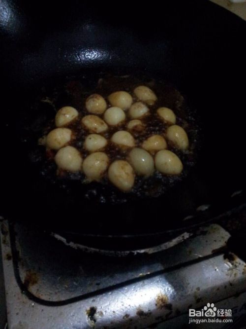 倒入鹌鹑蛋,让糖汁均匀浸入鹌鹑蛋。